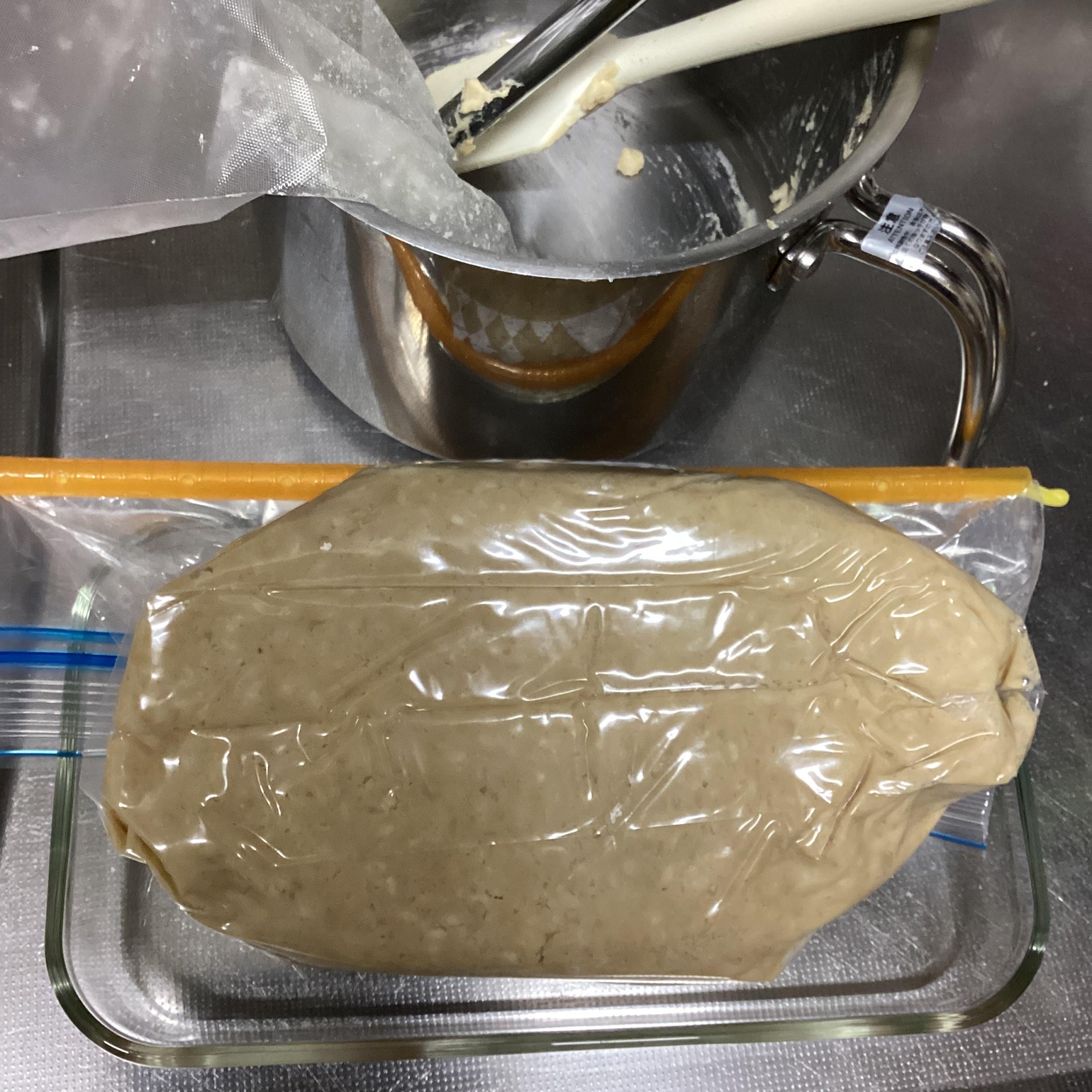 :ごく普通の味噌を1キロ(50杯分くらい?)仕込んだので、覚書を兼ねてレシピをアップします。大豆の浸水時間と熟成の時間は含めていません。
