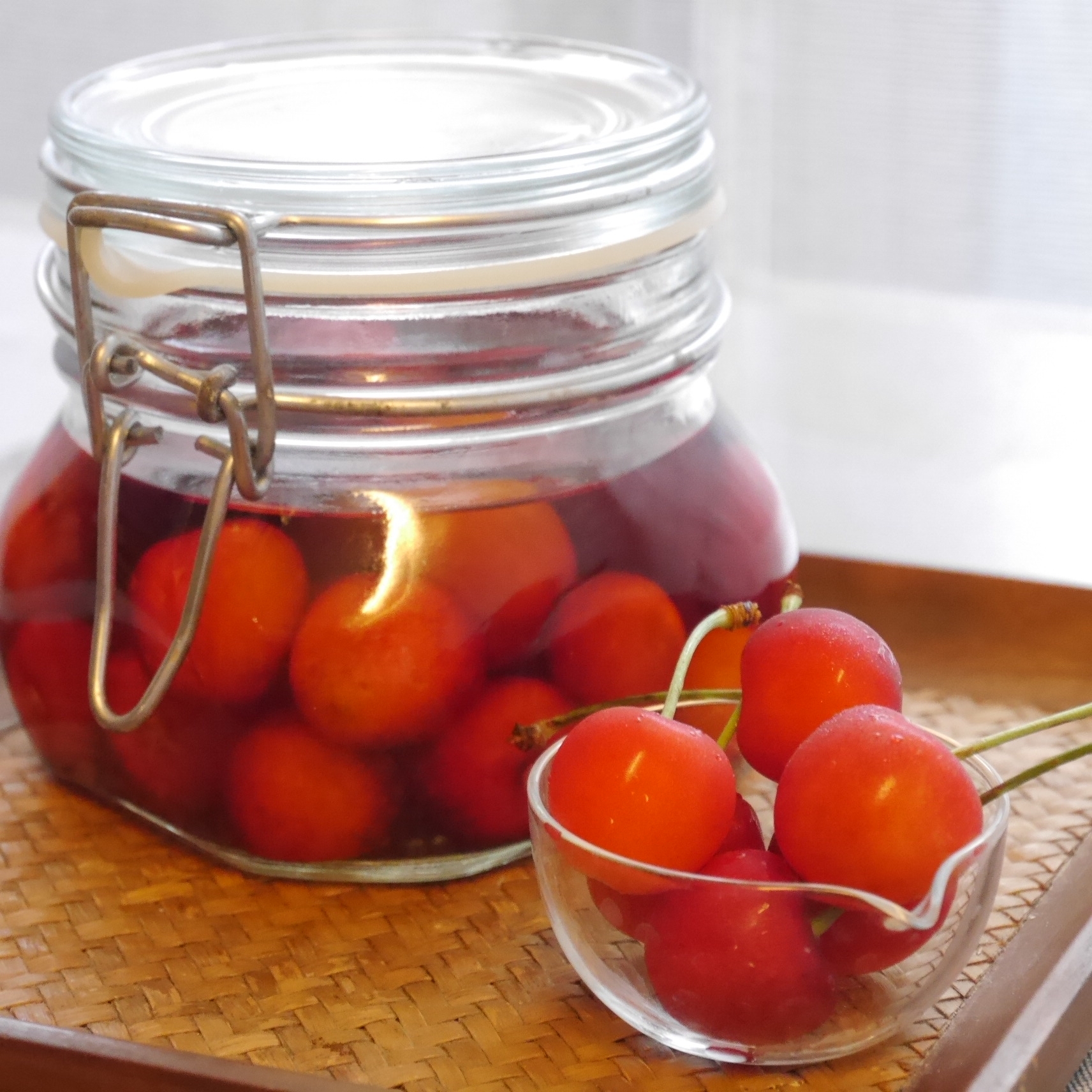 :旬の時期にしか作れないぜいたくなさくらんぼのフルブラ。ほんのりとやさしい甘さで、ロックでもソーダ割りでもおいしい★