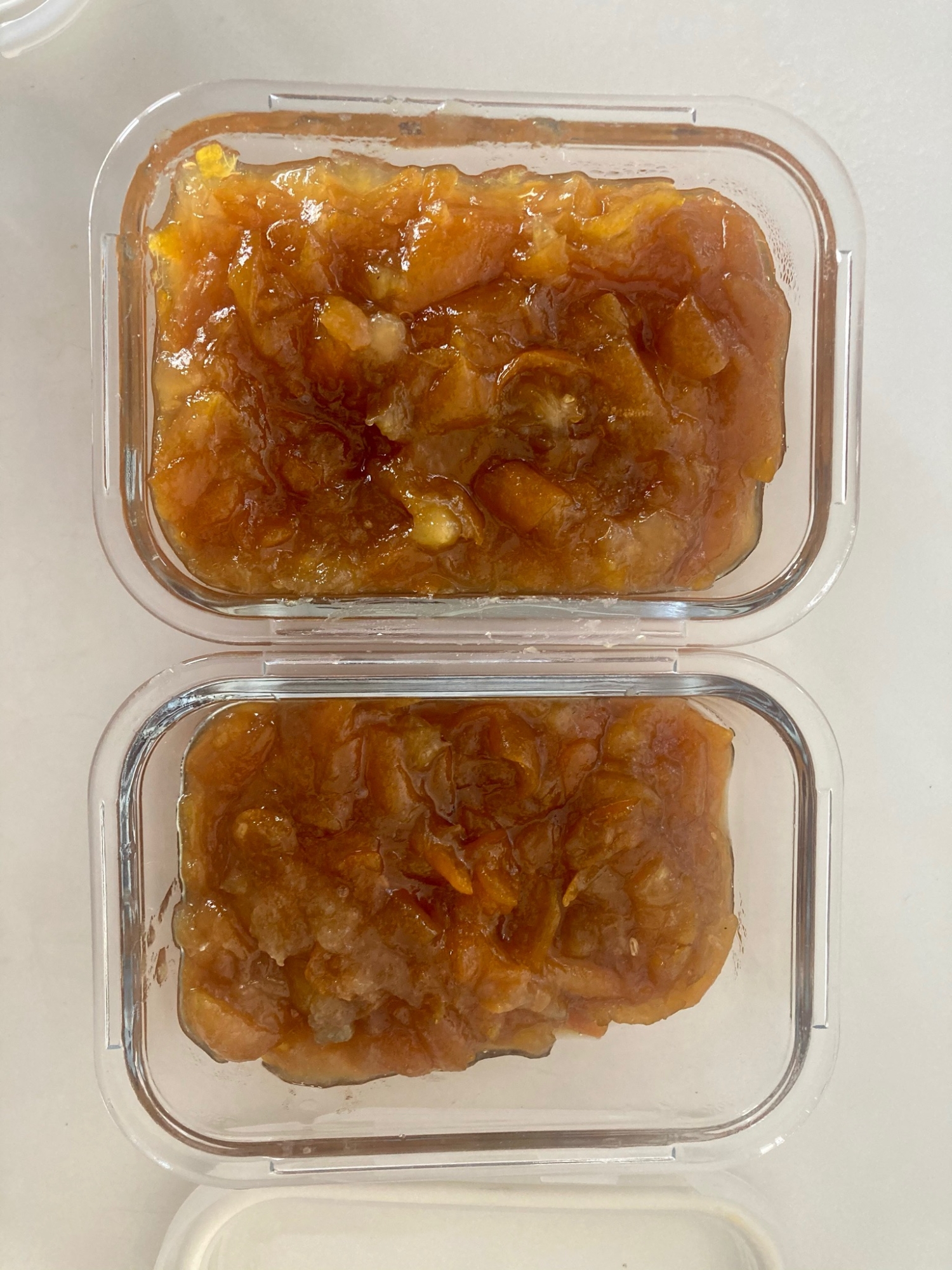 :たくさん砂糖使いたくなかったのでラカントを代用しました。ヨーグルトあえはもちろん、ホットケーキやスコーンに混ぜて焼くのも美味しいです。