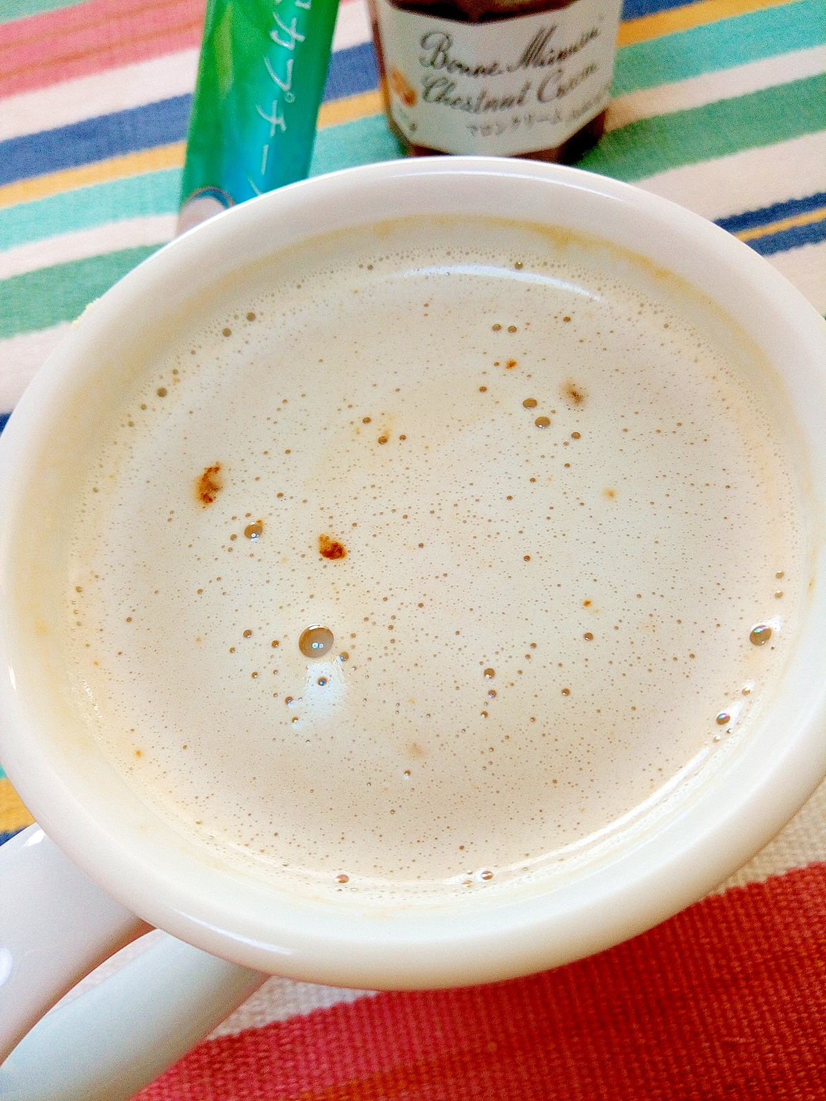 レシピを考えた人のコメント:ちょっと濃いめのカプチーノにマロンクリームを加えてモンブラン仕立てに♪