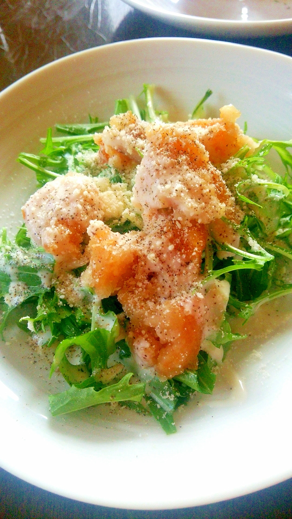 レシピタイトル:から揚げと水菜のシーザーサラダ