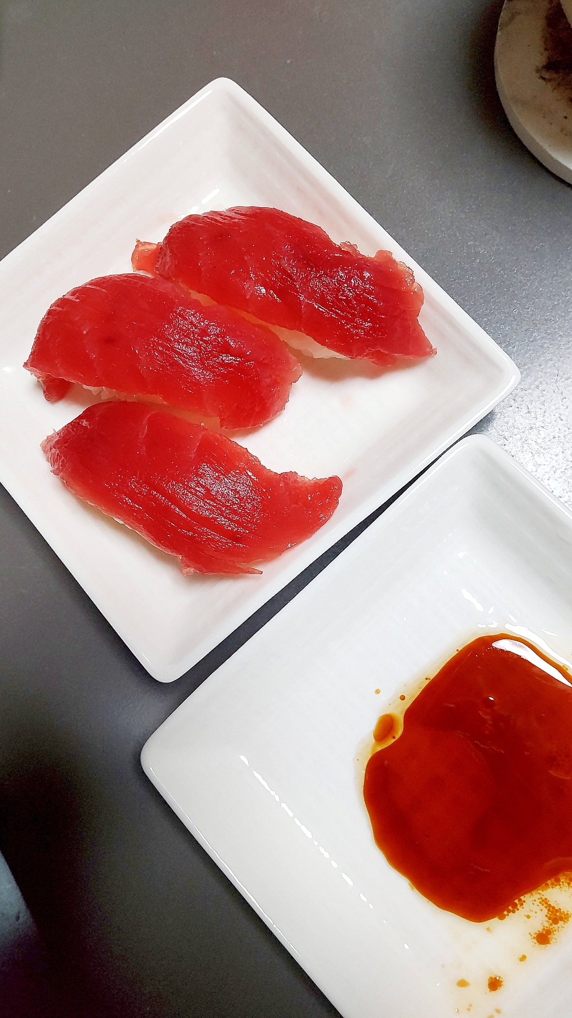 :醤油にごま油を混ぜたタレでいただきます。ポキ風。