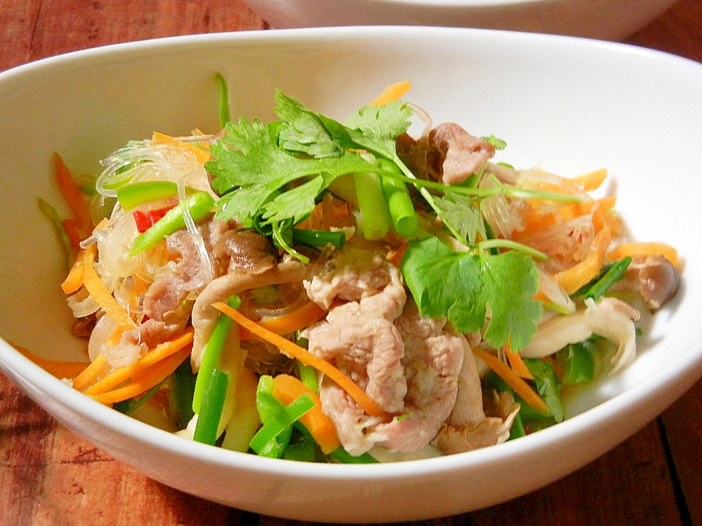 レシピタイトル:ヤムウンセン風 豚肉と野菜の春雨炒め