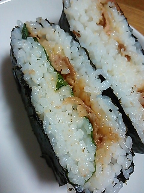 レシピタイトル:おにぎらず♪豚こま切れで簡単に(*^^*)
