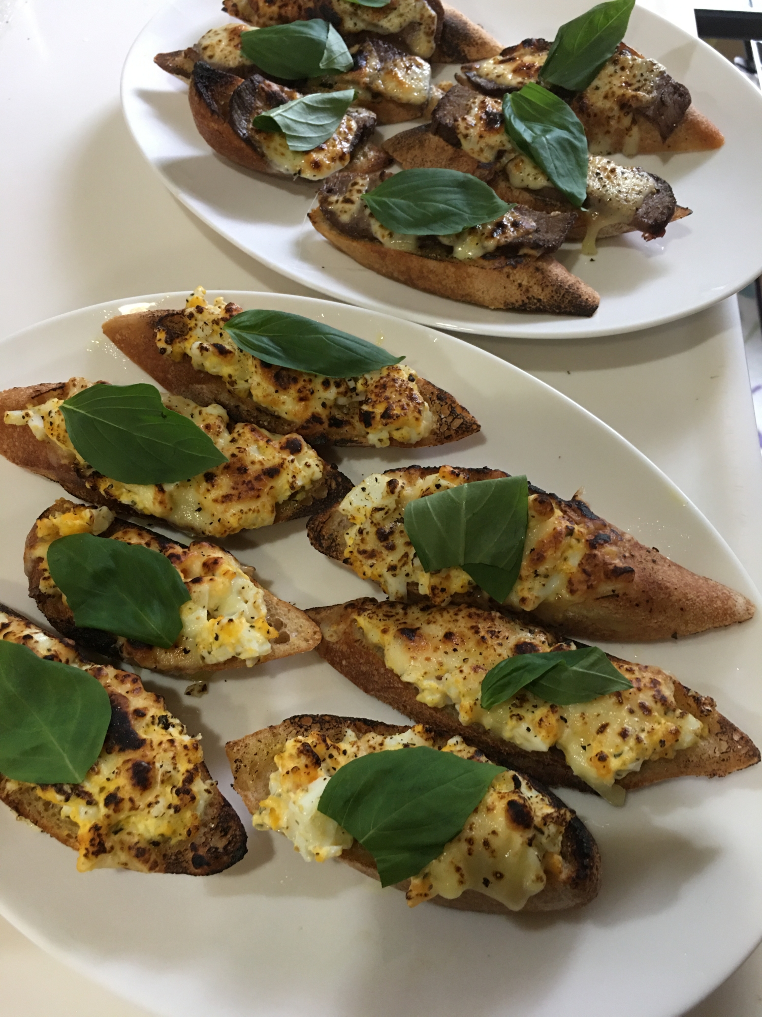 レシピを考えた人のコメント:イタリアの軽食料理です。にんにくオイルが染み込んだパンの上に好きな具材を乗せて焼きます。