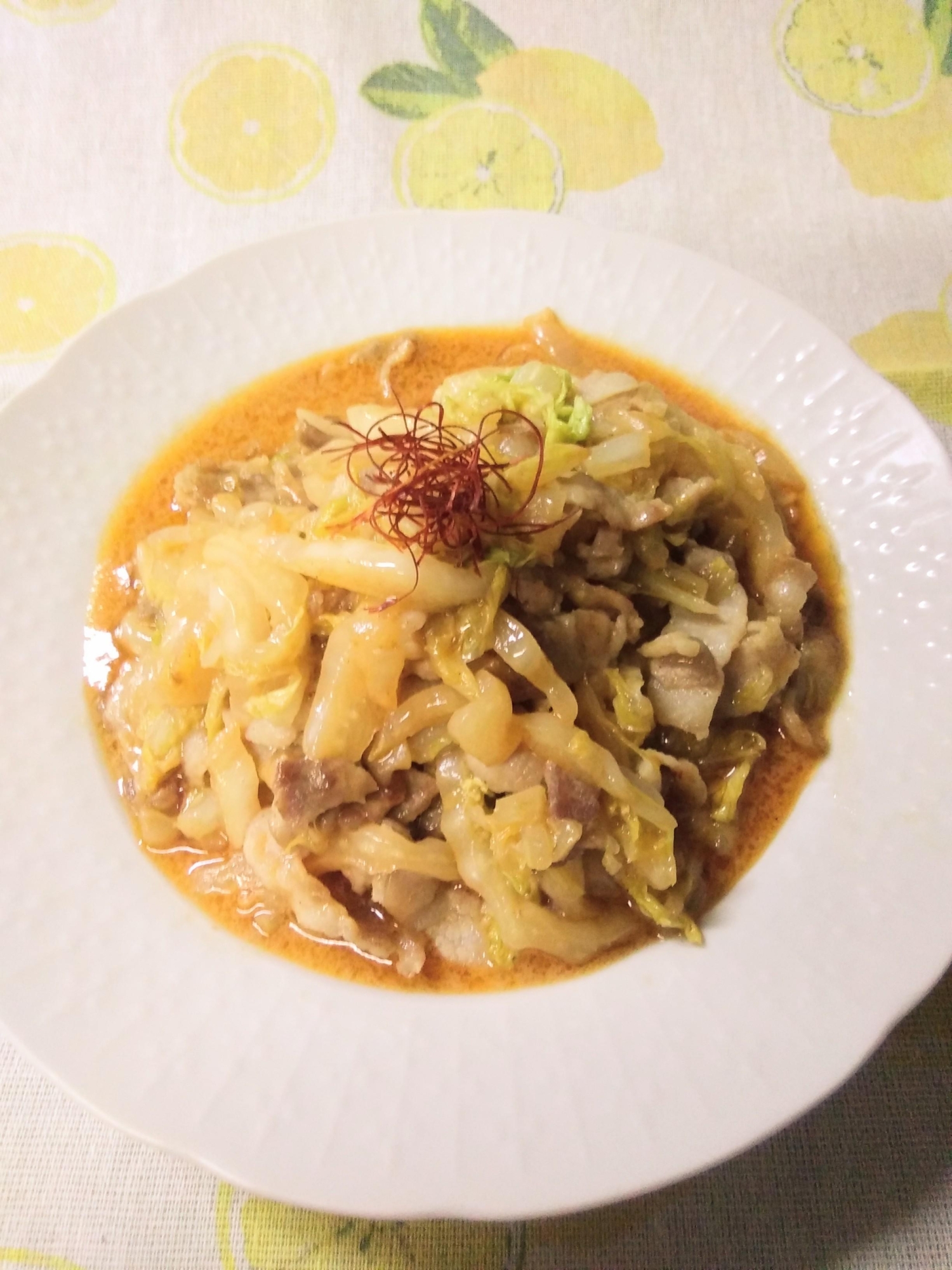 白菜と豚バラ肉のピリ辛オイマヨ炒め