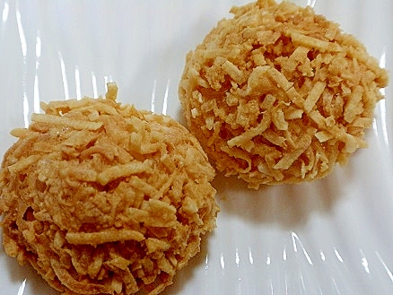 :ココナッツの風味とシャキッとした歯ごたえが楽しめる、甘いクッキーのようなお菓子だよ。材料も少なくて、作り方もとっても簡単!