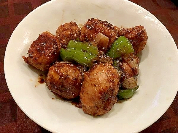 レシピを考えた人のコメント:バルサミコ酢と赤ワイン、ひき肉+薄切り肉で作る洋風酢豚