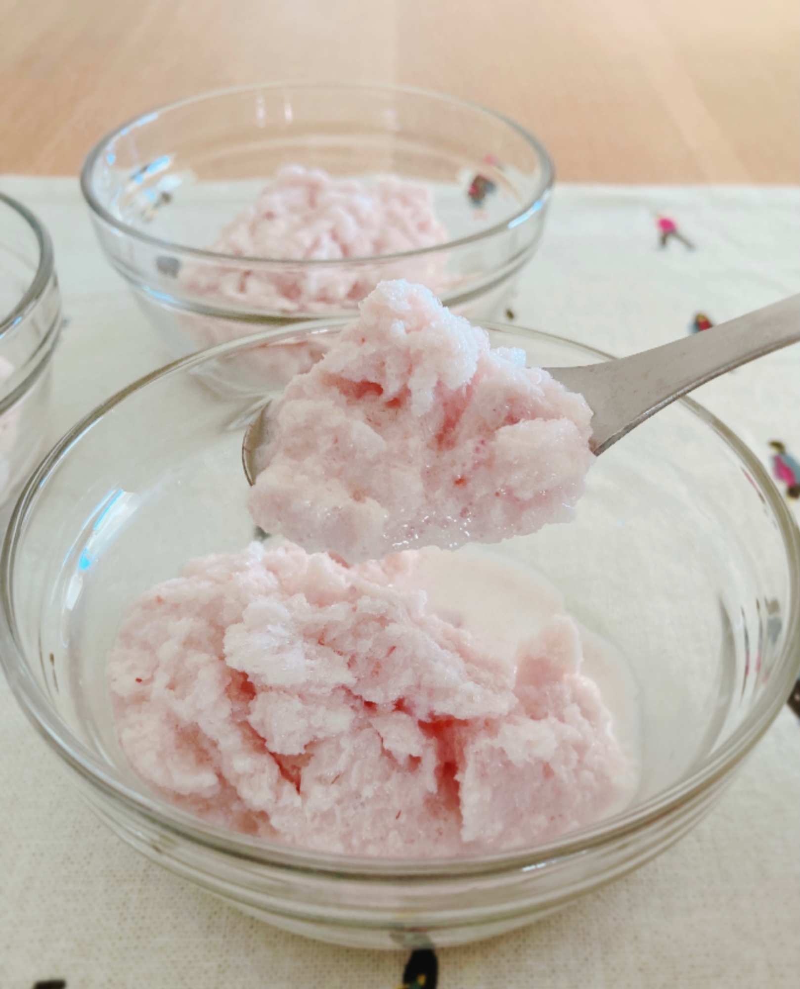 レシピを考えた人のコメント:牛乳といちごミルクの素で、簡単にできるジェラートです♡