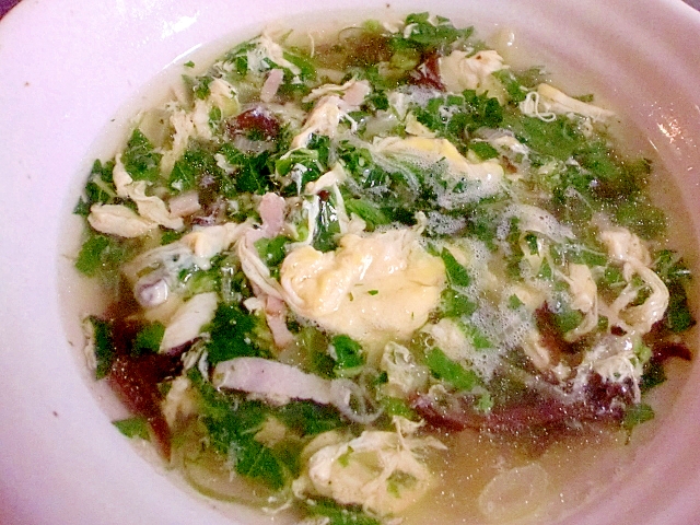 レシピを考えた人のコメント:最近見ないなと思っていたら、やっと地元産のモロヘイヤが出始めたので、いつものスープにしました。