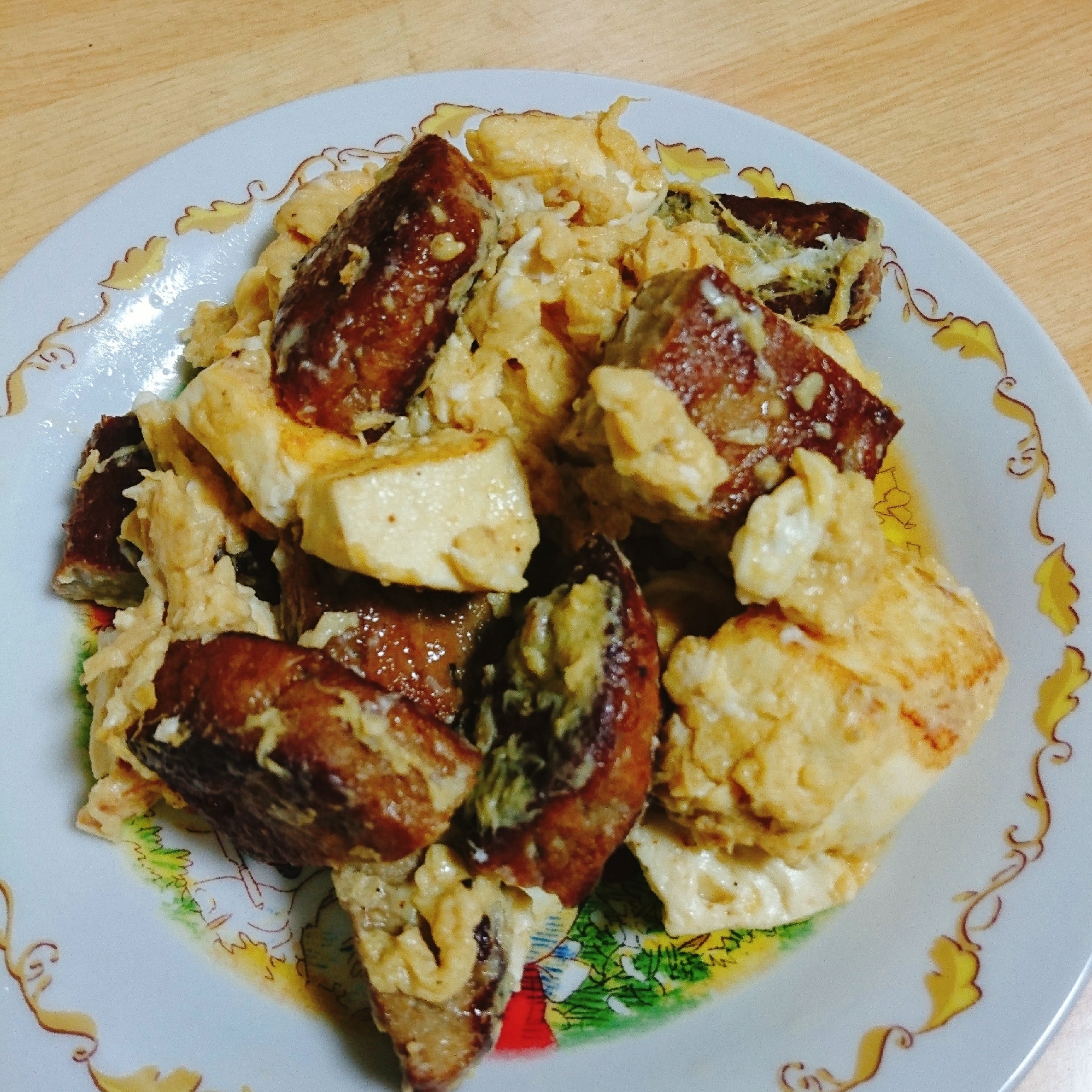 レシピタイトル:マルシンハンバーグと豆腐の玉子炒め
