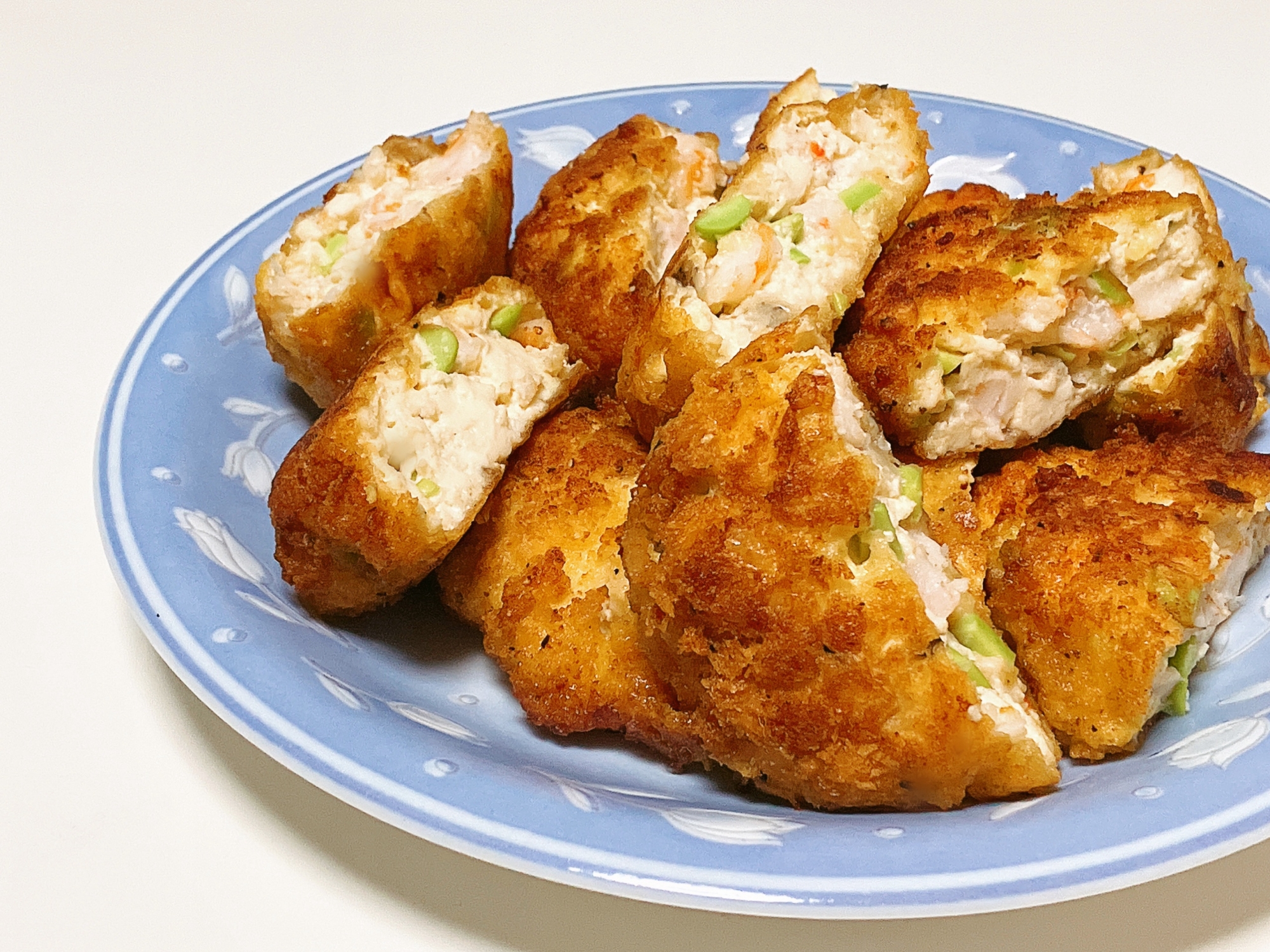 レシピを考えた人のコメント:木綿豆腐を使った、プリプリの海老カツです!