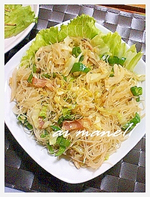 レシピを考えた人のコメント:コシのあるビーフンにたっぷりの野菜を入れて焼きました♪一緒にめしあげれ~