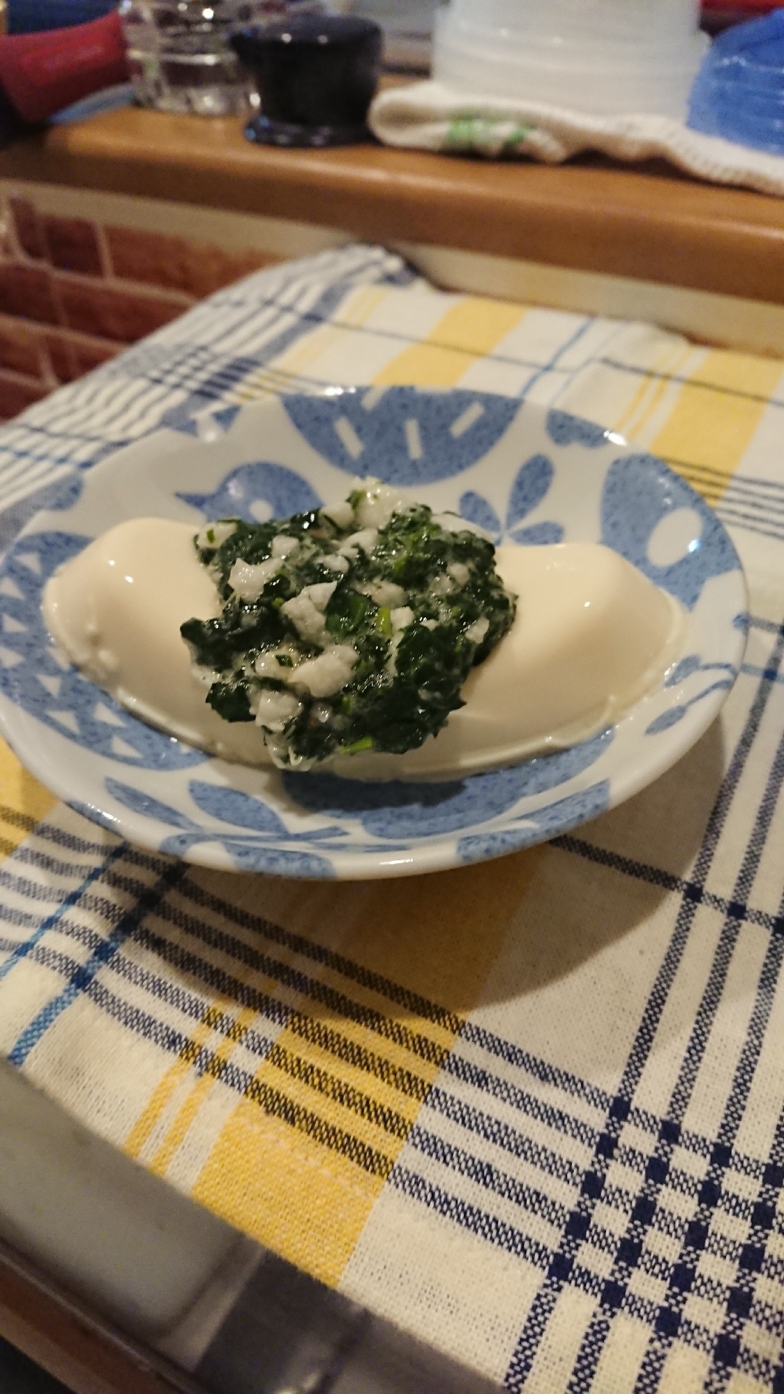 レシピタイトル:モロヘイヤと長芋の冷奴♡
