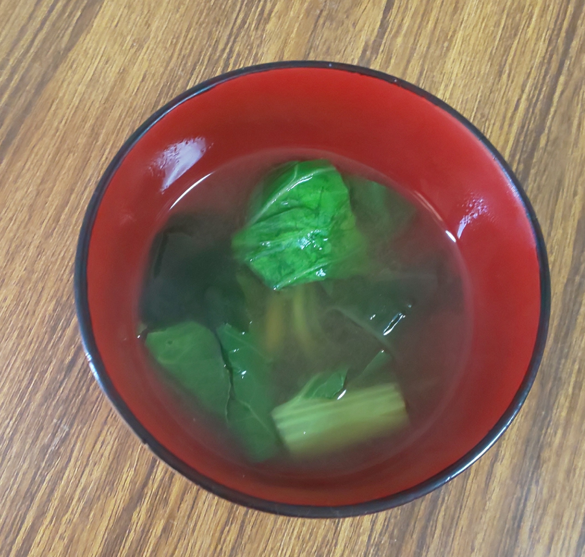レシピを考えた人のコメント:小松菜、わかめの味噌汁を作りました。