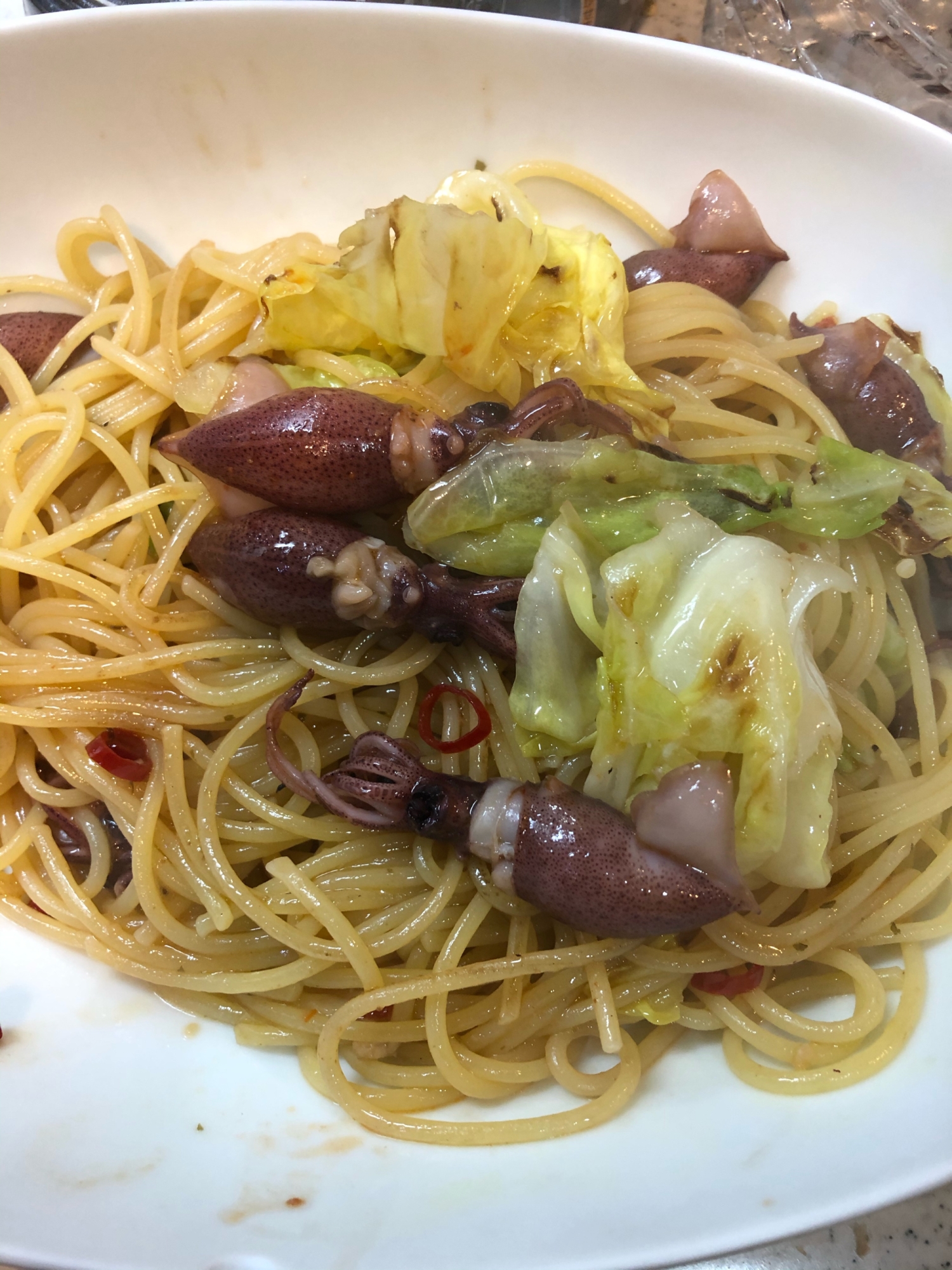 レシピタイトル:春キャベツとホタルイカのペペロンチーノ^_^