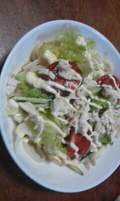 レシピタイトル:ヤマキのめんつゆで♪たっぷり野菜のサラダうどん