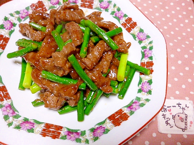 レシピタイトル:牛肉とにんにくの芽の炒め物