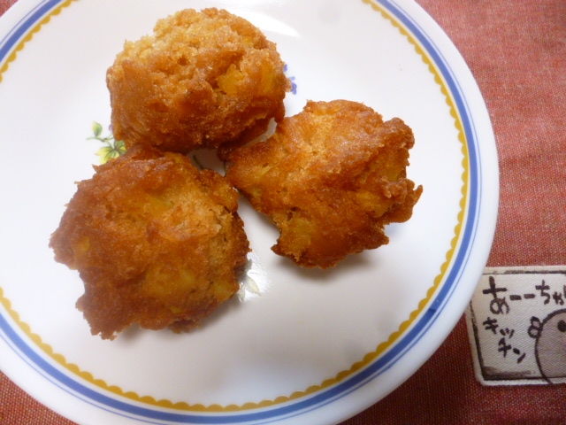 レシピを考えた人のコメント:黒糖の香りとパインの甘み 沖縄風揚げドーナツ 形は いびつだけど 美味しいですよ~^^