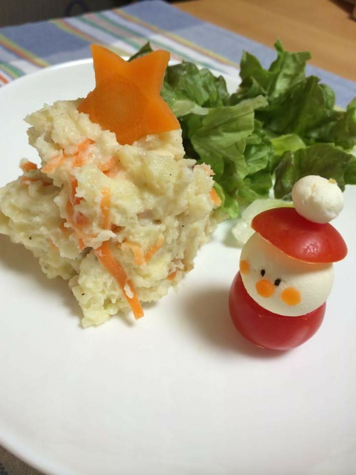 レシピを考えた人のコメント:同時に2品作れるレシピです。 ポテトサラダを作りながらサンタクロースも作れます。