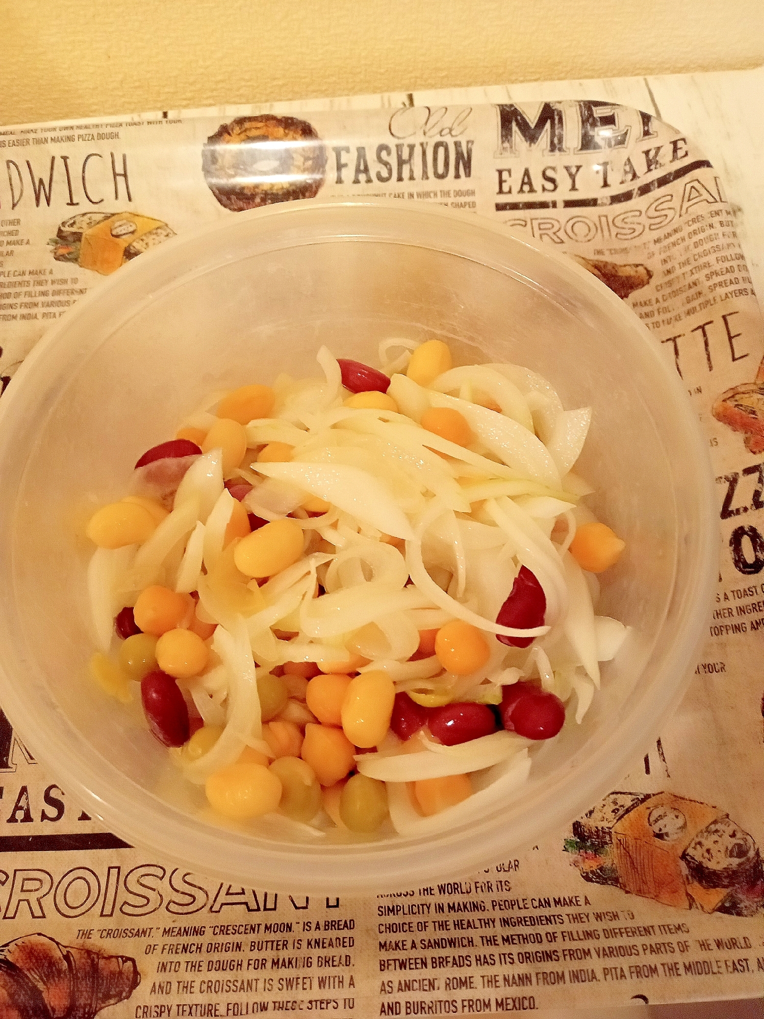 レシピタイトル:ミックスビーンズと玉ねぎのマリネ