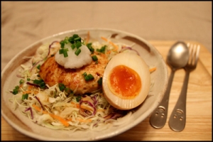 :低カロリー豆腐ハンバーグの和風ロコモコ丼