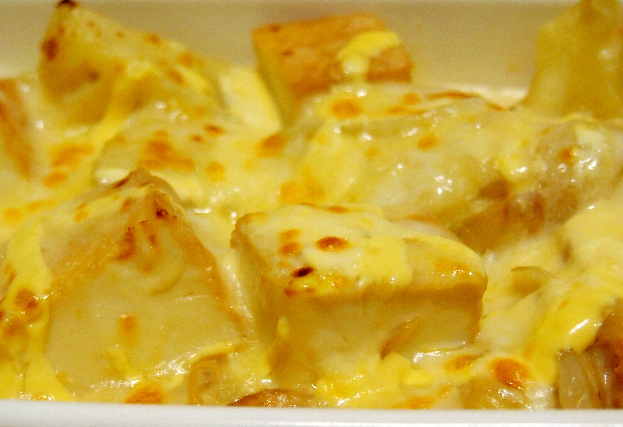 レシピタイトル:厚揚げとじゃがいもの味噌マヨグラタン