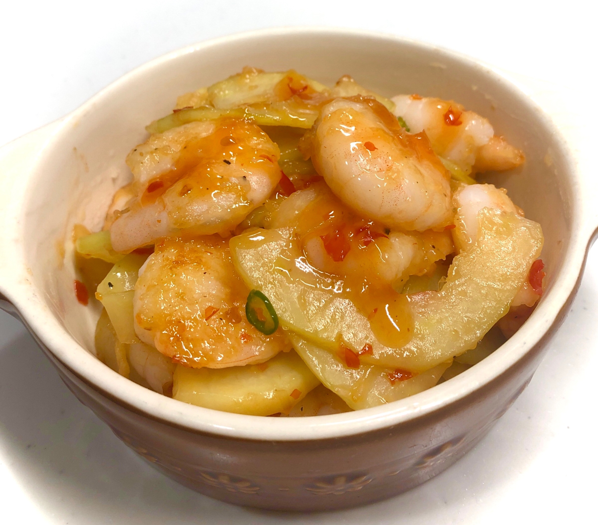 レシピタイトル:青パパイヤとえびのスイートチリソース炒め