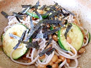 レシピタイトル:ズッキーニと納豆の蕎麦