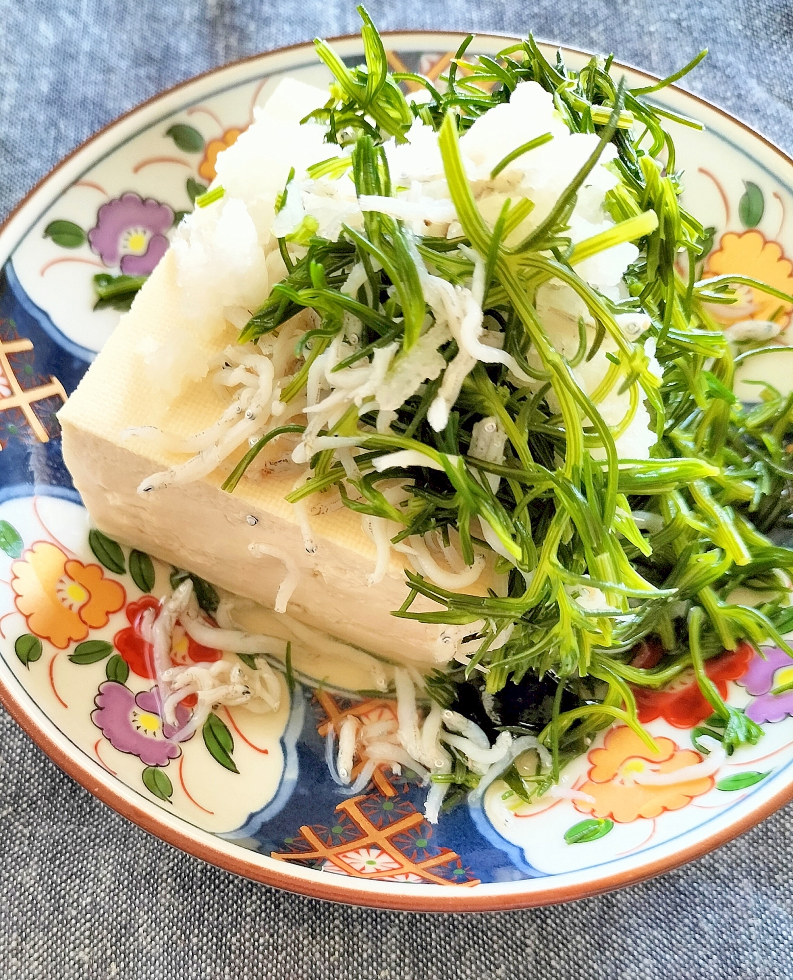 :夏にぴったり♩辛味大根としらすのおかひじき豆腐♩
