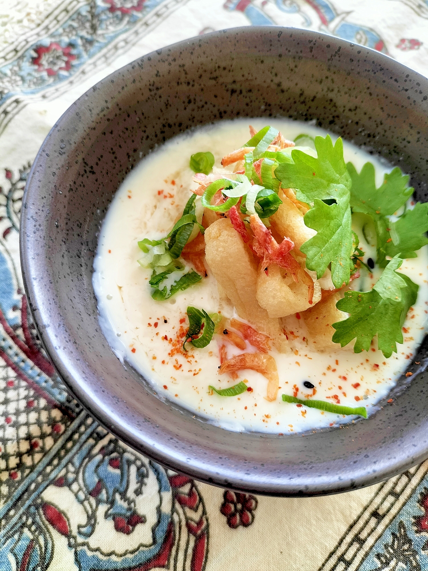 レシピを考えた人のコメント:濃い豆乳にお酢を混ぜたらふわふわとろとろなシェントウジャンの出来上がり♪ 紹興酒にも合います