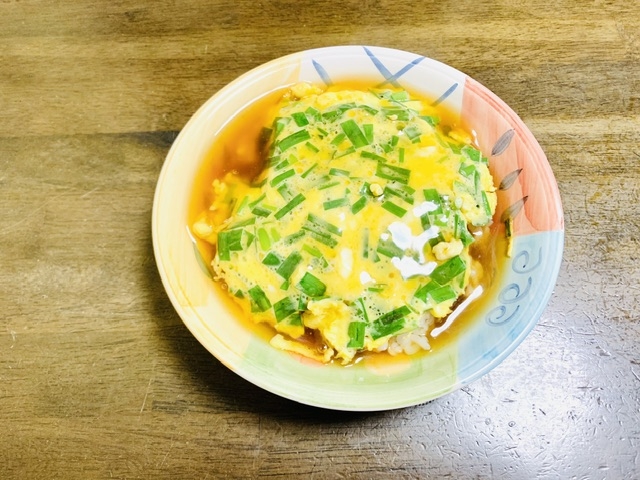 レシピタイトル:ニラレシピ ニラ卵あんかけごはん