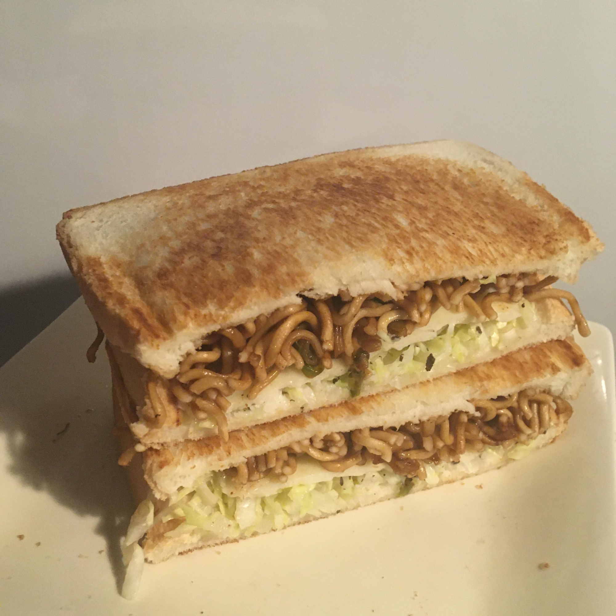 焼きそば、チーズ、キャベツのホットサンド