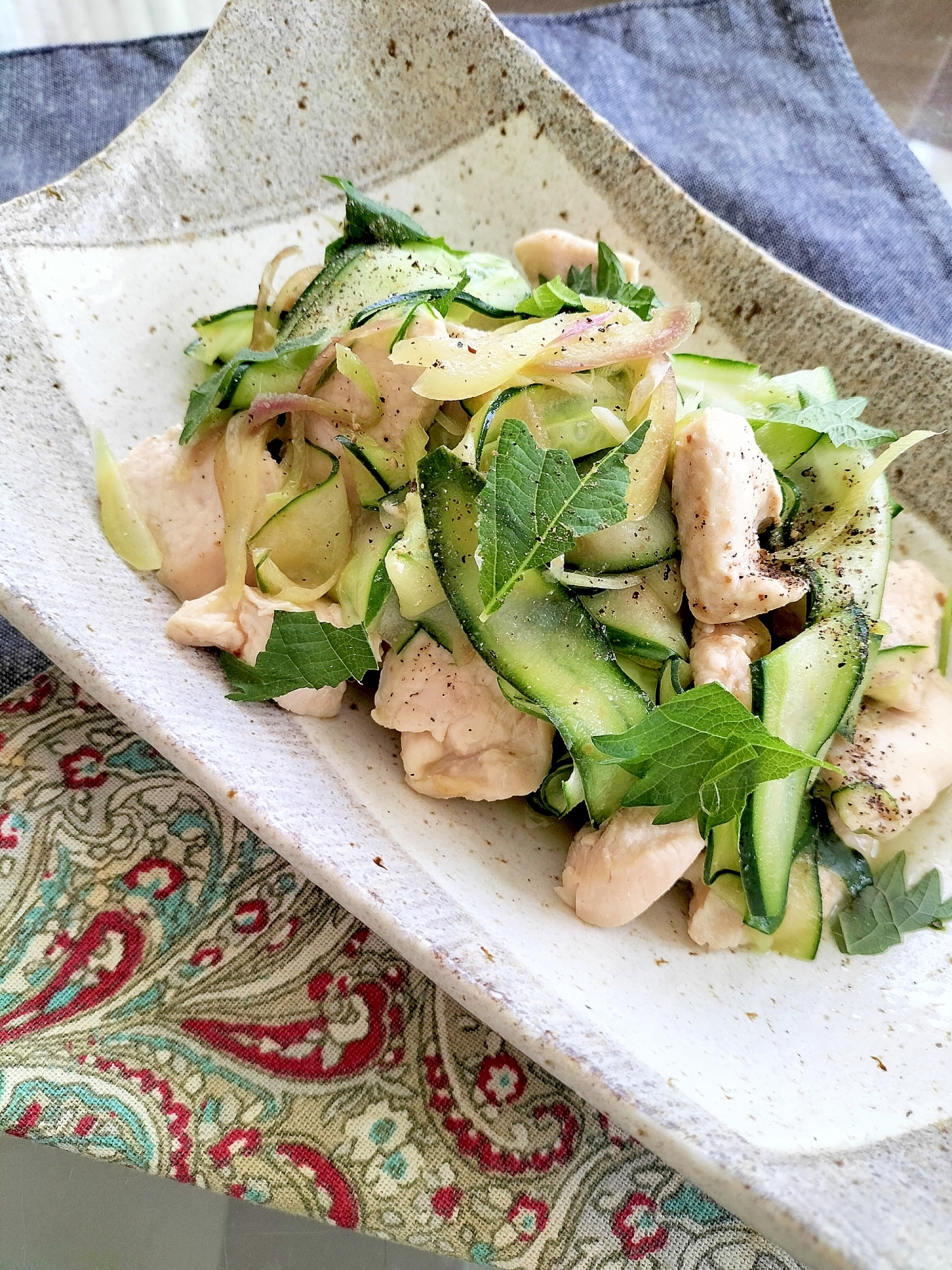 :暑い時期やジメジメ季節におススメ♩ きゅうりと梅しそみょうがが爽やかでさっぱり美味しい主菜。 ◎夏バテ ◎低脂質派 ◎ヘルシーおかず派 おすすめです