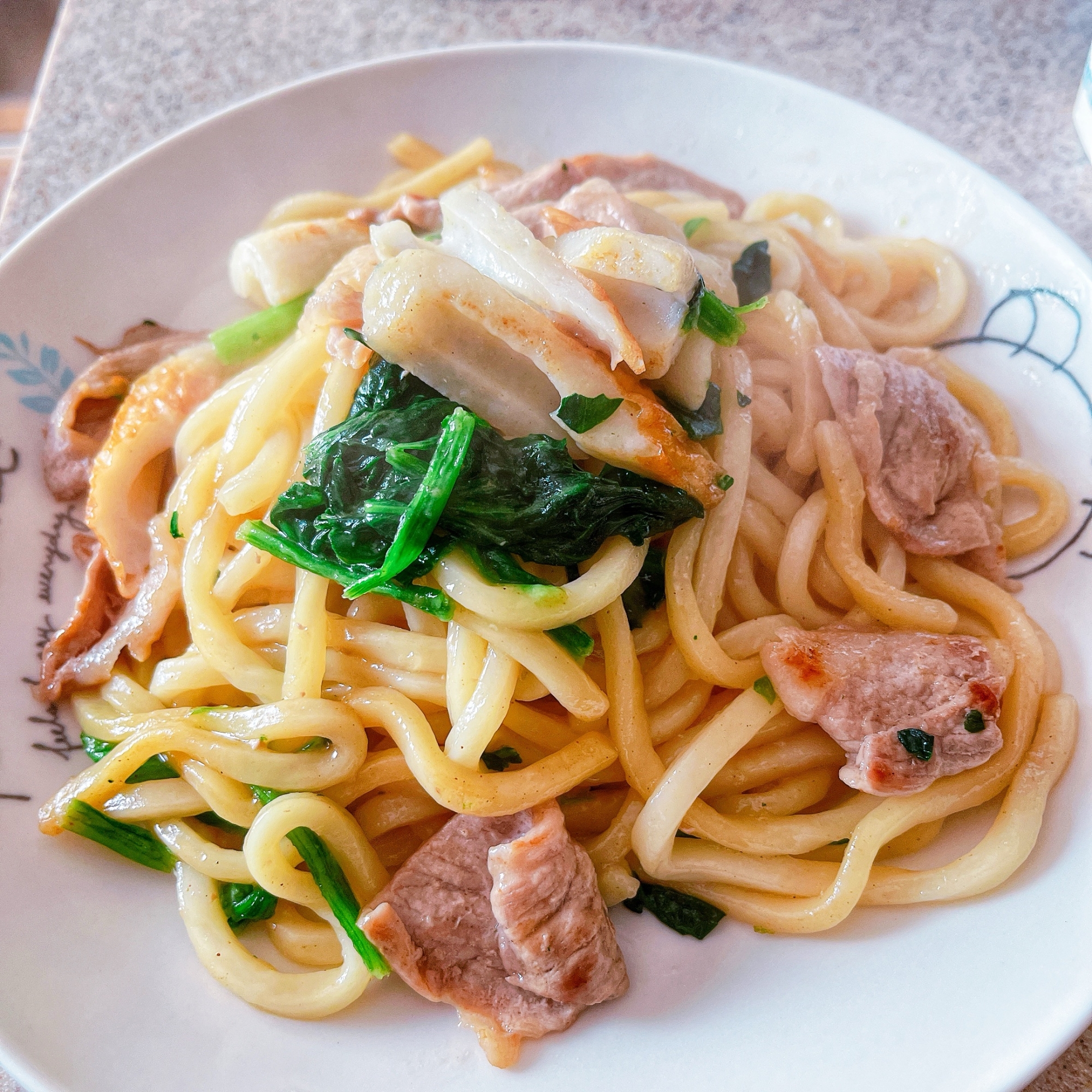:めんつゆ好きな人〜( ´ ▽ ` )ノ集まれ〜 和風の焼きうどん、たまらんよ 冷凍うどんの方がモチモチする 男性や初心者さんにもオススメ