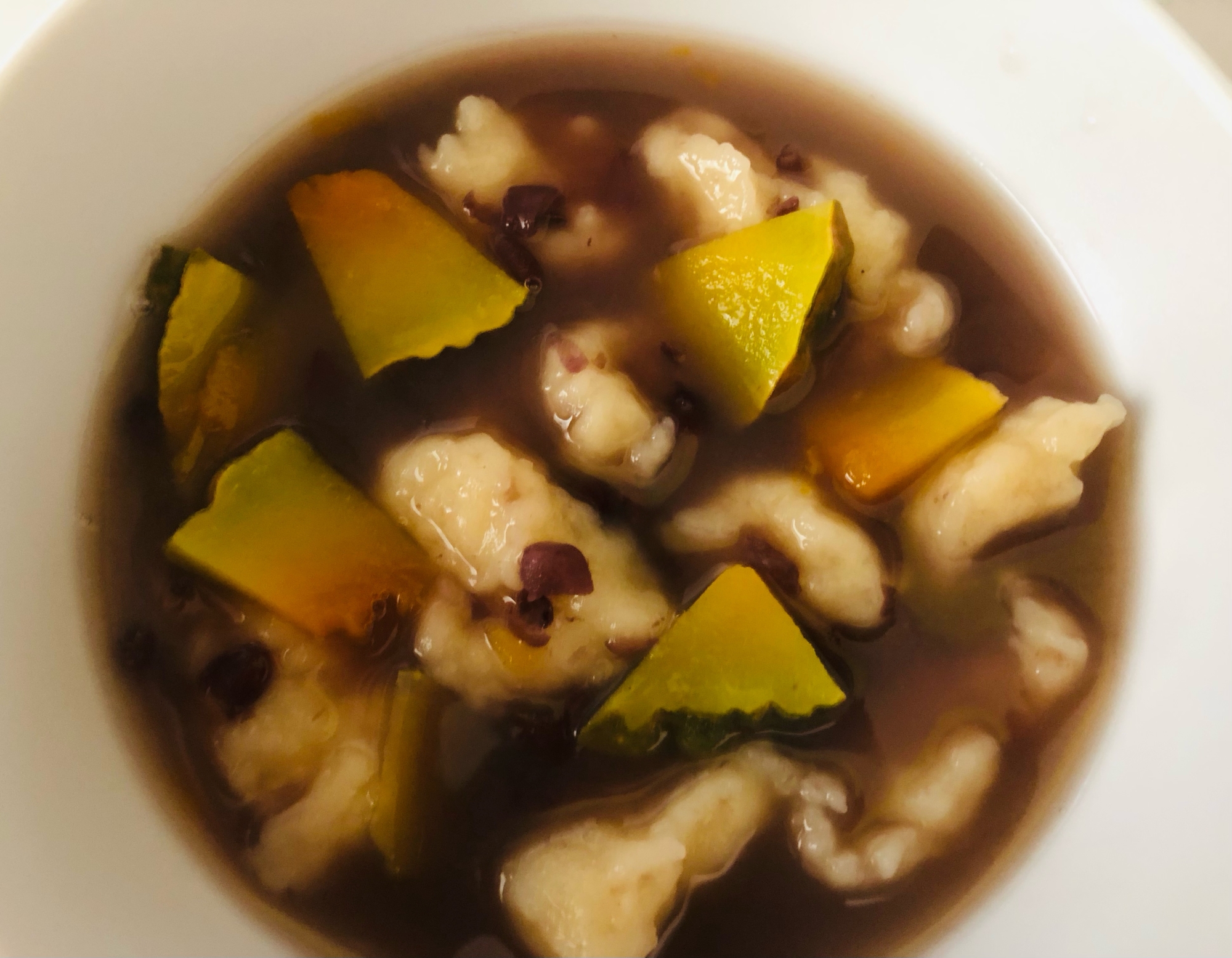 レシピを考えた人のコメント:長野県の中信地方(松本・安曇野)の伝統料理♪ かぼちゃと小豆のすいとんです。