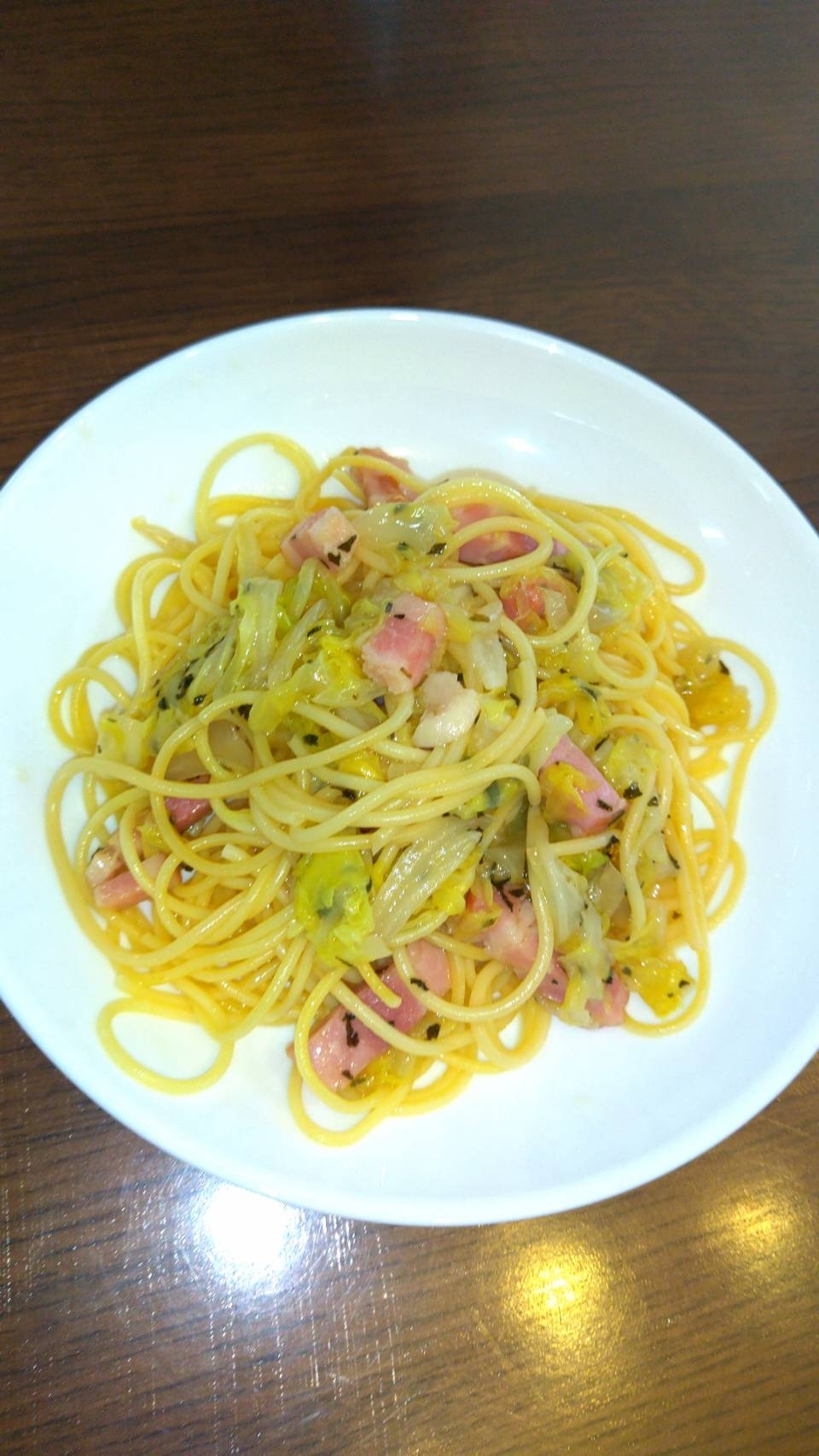 レシピタイトル:バジル香る春キャベツのペペロンチーノ