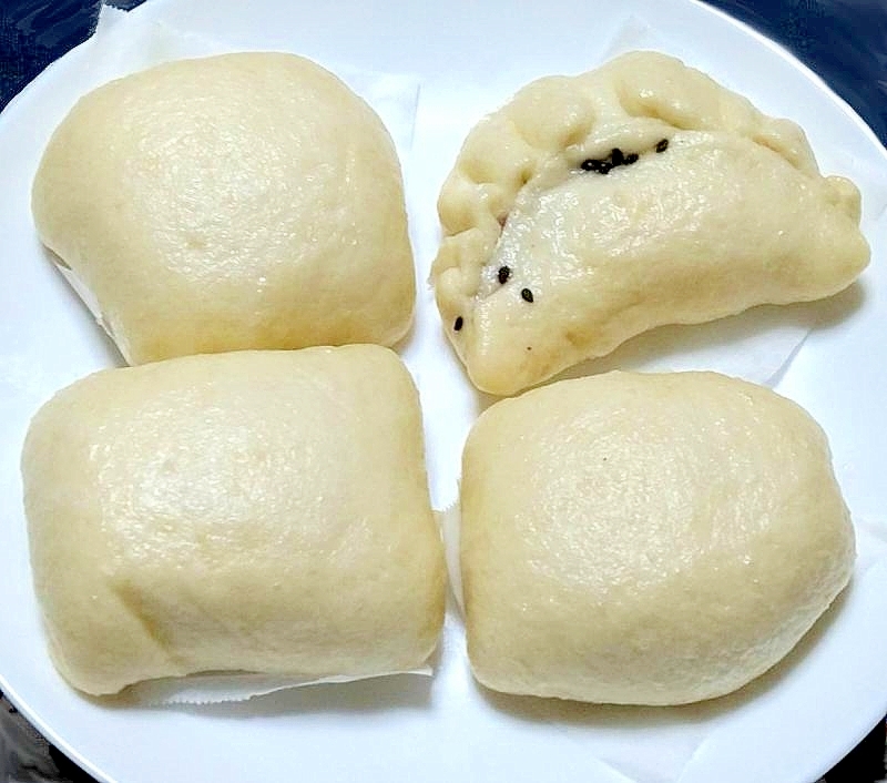 レシピタイトル:蒸し器でほかほかあんまん(中華あん&つぶあん)