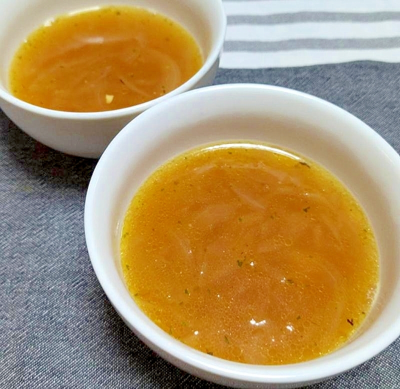 レシピを考えた人のコメント:玉ねぎを焦げ目がつくまでしっかり炒めて作ったオニオンスープ。