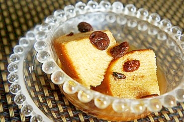 :たっぷりお酒がしみ込んだサバラン、美味しいですよね。バウムクーヘンを使えばあら簡単、お好みでホイップクリームやアイスクリームをのせればさらに至福のデセールです。