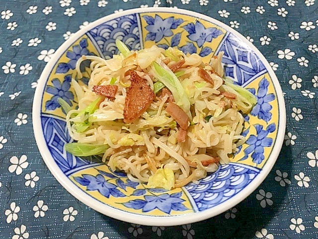 レシピタイトル:チャーシューとねぎ入りそうめんチャンプルー