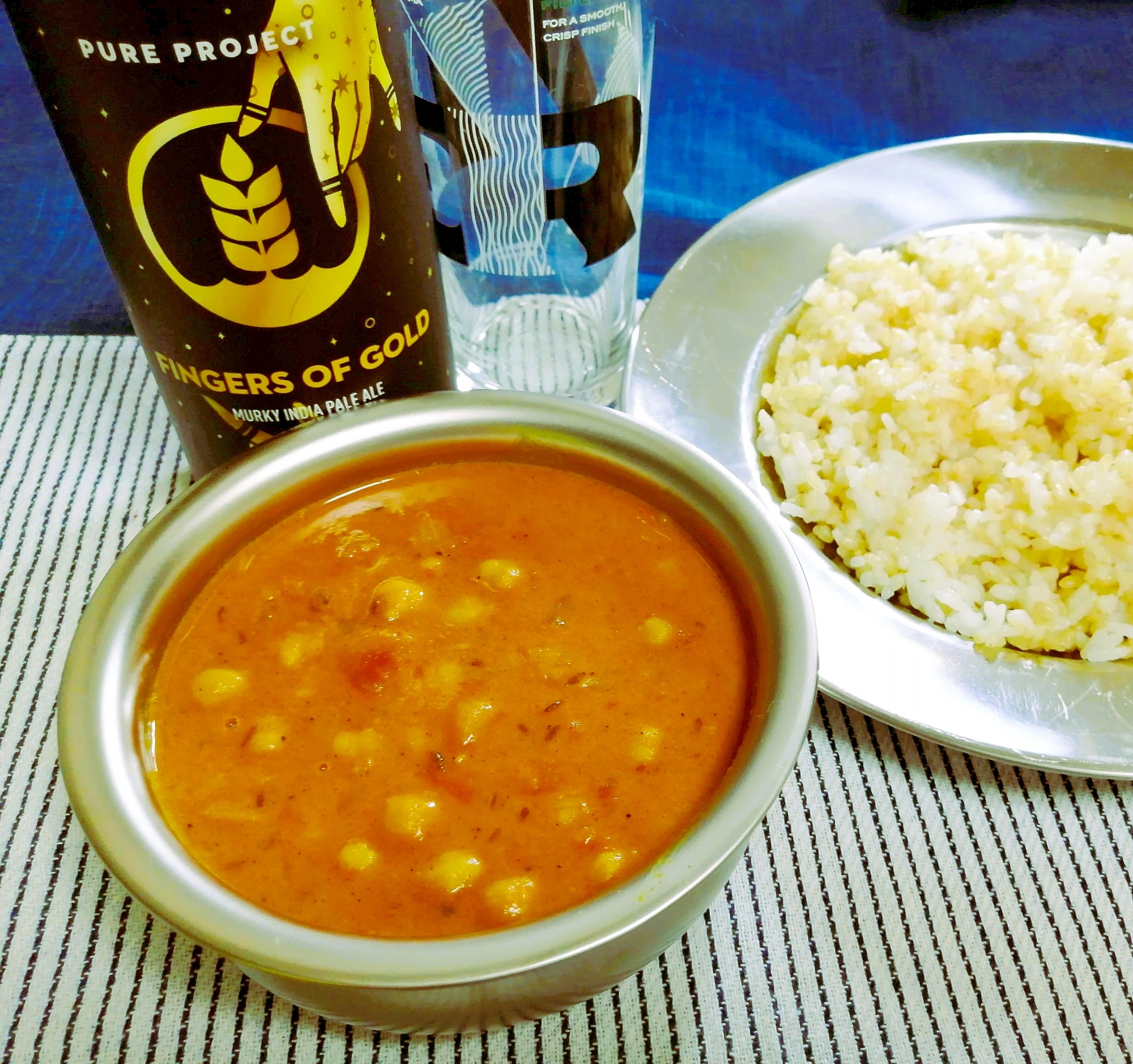 :今回は、軽やかな香りと洗練された味わいのヘイジーIPAに、南インド風ココナッツミルクとひよこ豆のまろやかな味わいのカレー(チャナマサラ)をペアリング。